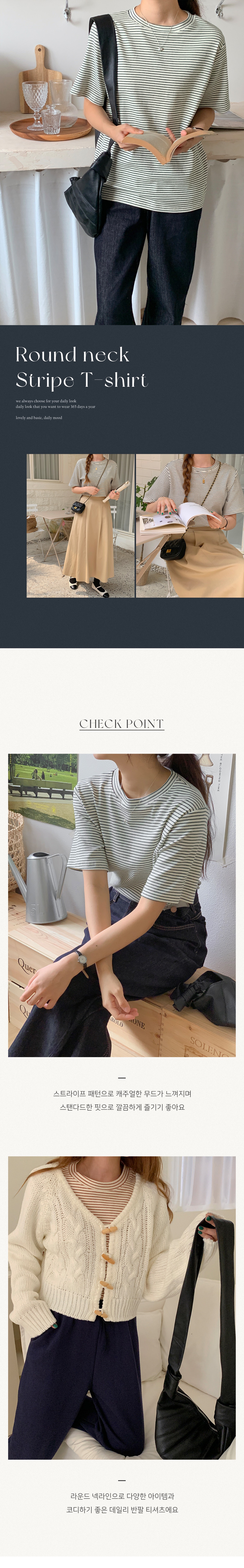 스트라이프티셔츠 라운드 반팔 레이어드 여성 단가라 티