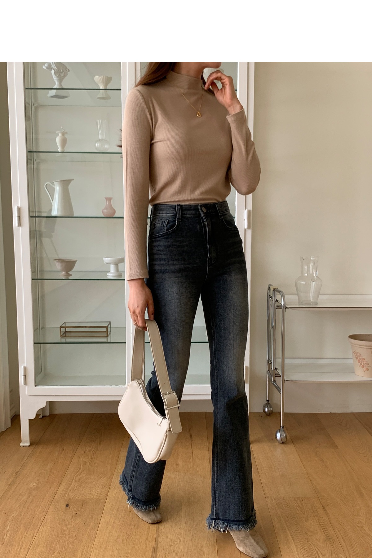 반폴라티 목티 무지 슬림 골지 레이어드 이너 긴팔티셔츠