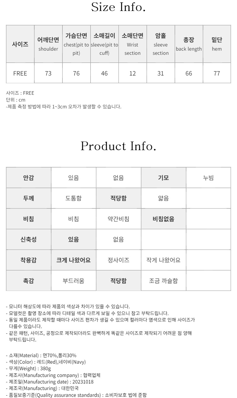 레드 / Free 사이즈 착용했습니다^^
