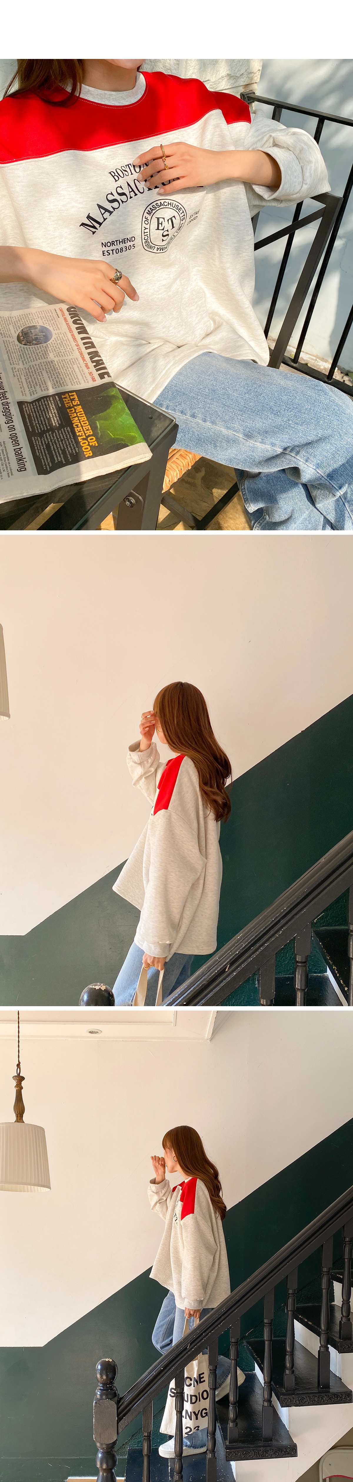 라운드넥 배색 레터링 맨투맨입니다