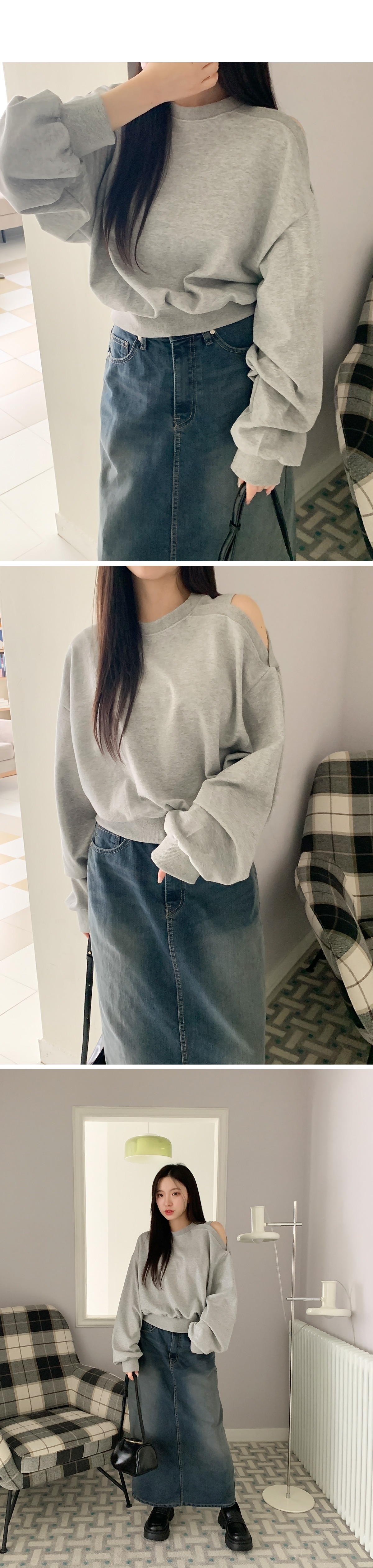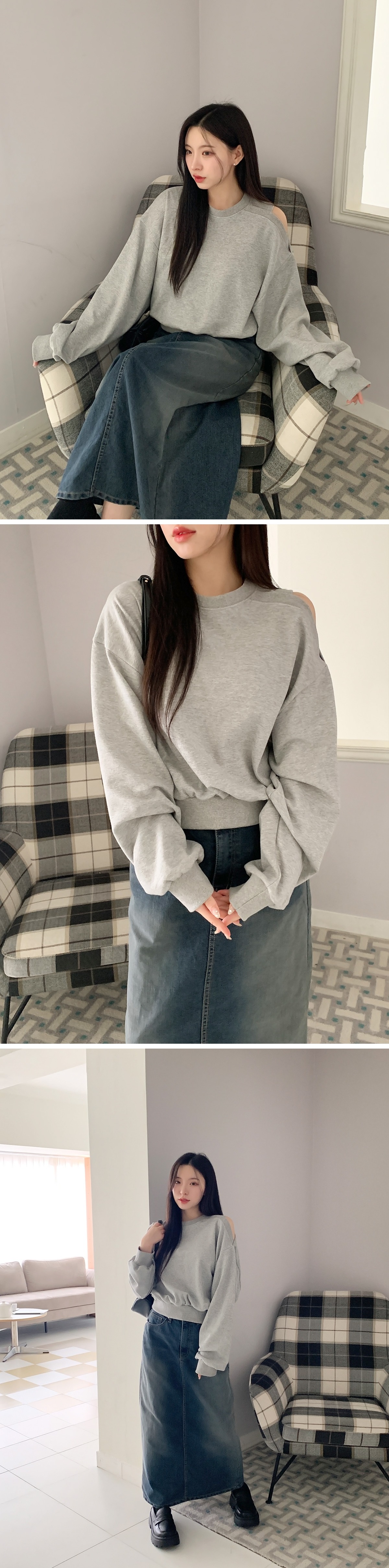 무지티 크롭티 원숄더 트임 라운드 맨투맨 티셔츠