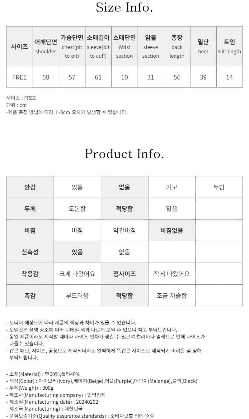 - 상품 하자, 오배송의 경우 수령일로부터 7일 이내 고객센터 접수 후 교환∙반품이 가능합니다. (교환/반품비 무료)