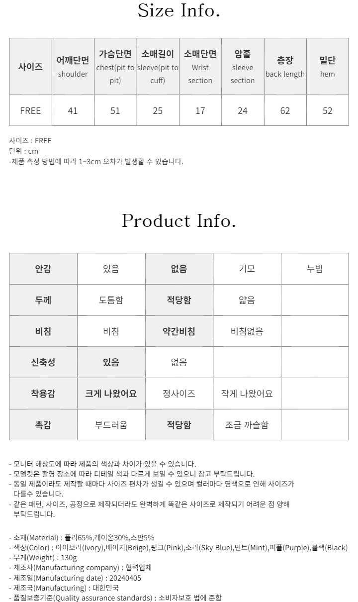 - 상품 하자, 오배송의 경우 수령일로부터 7일 이내 고객센터 접수 후 교환∙반품이 가능합니다. (교환/반품비 무료)