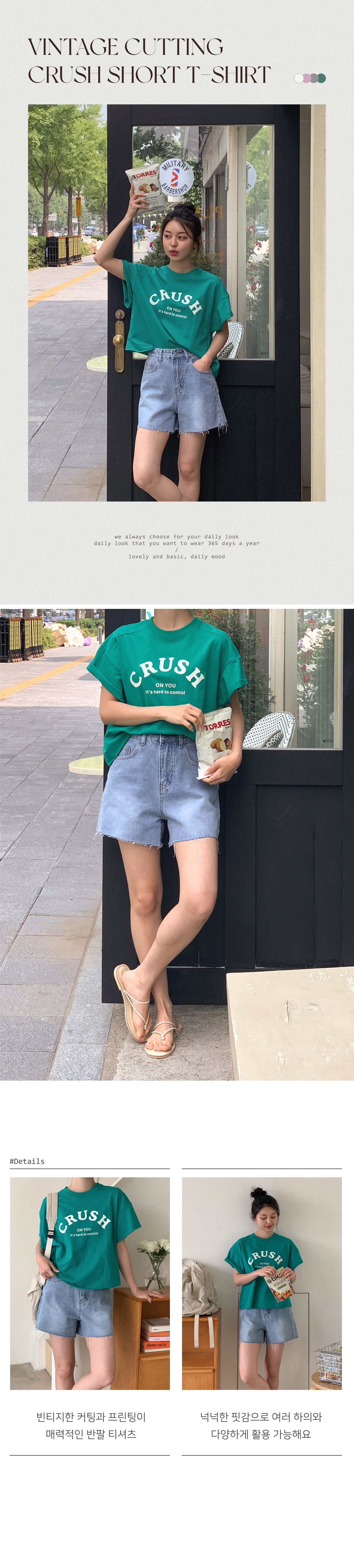 크롭티 크러쉬 라운드넥 빈티지 컷팅 프린팅 반팔티셔츠