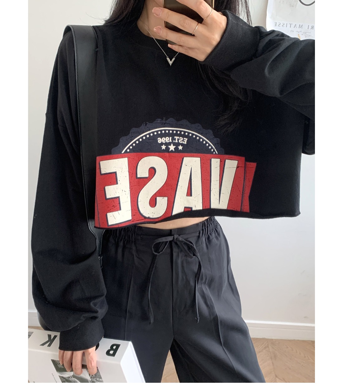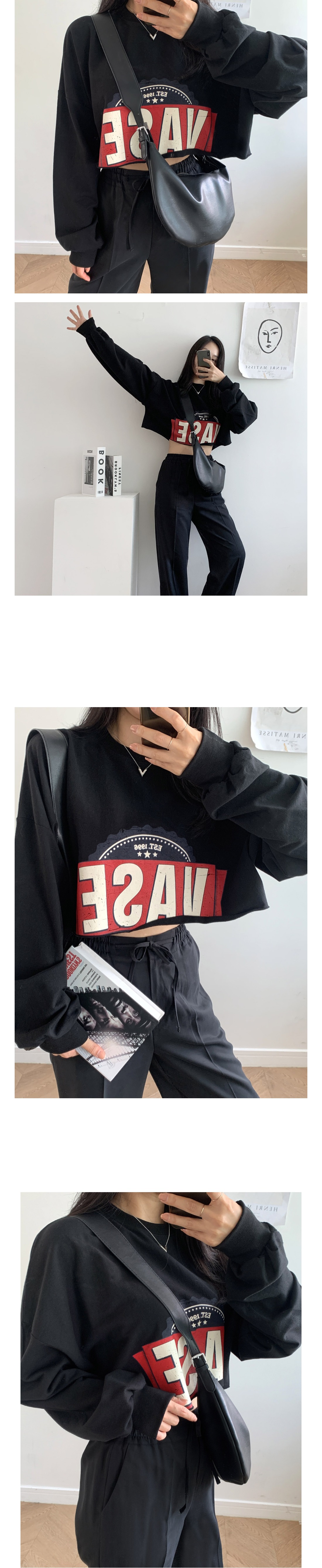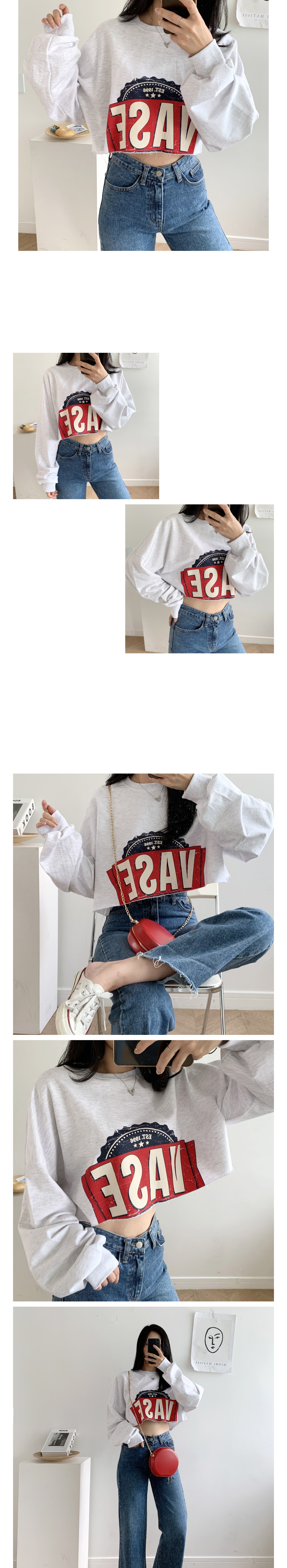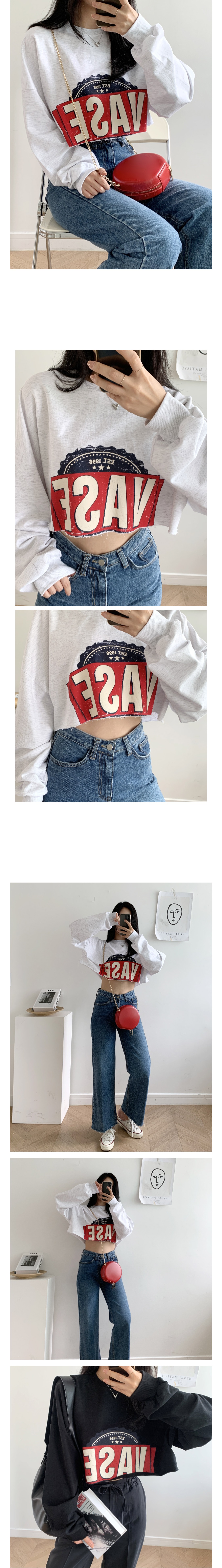 여자 베이스 크롭 맨투맨 베이지 백메란지 블랙 여성 숏 봄 가을 티셔츠