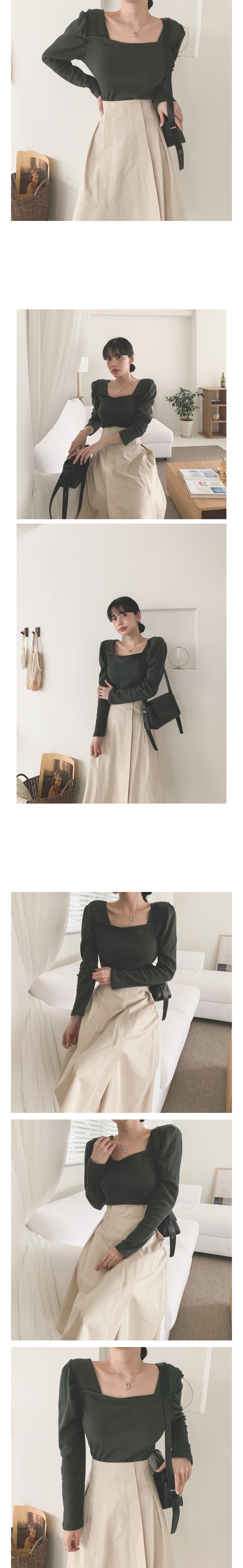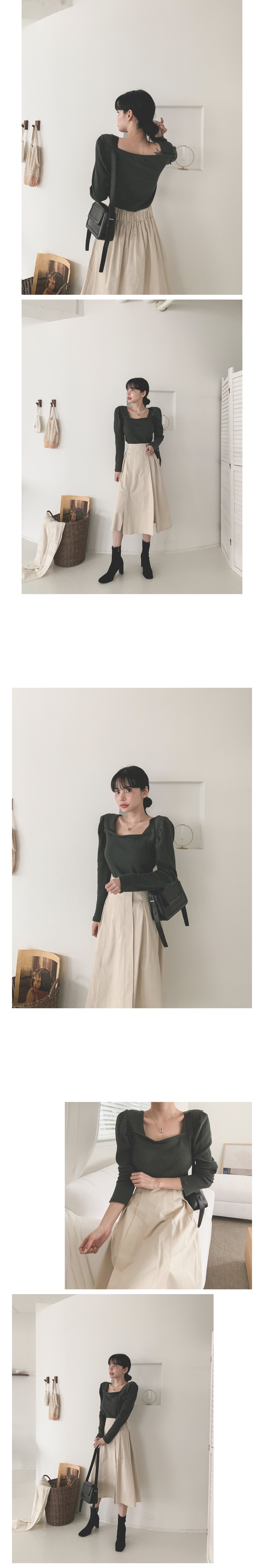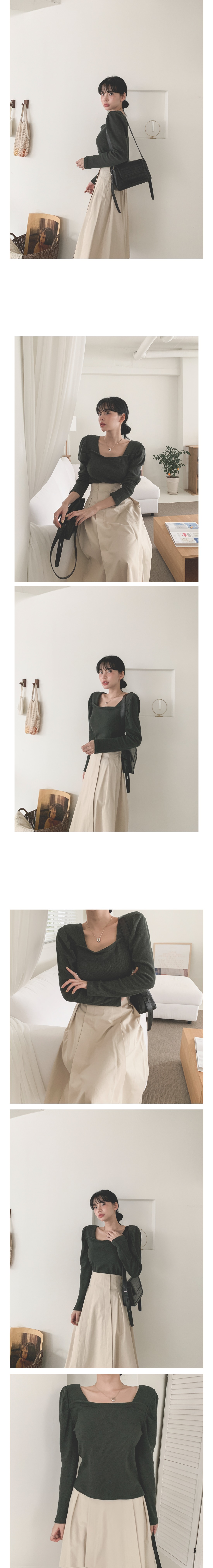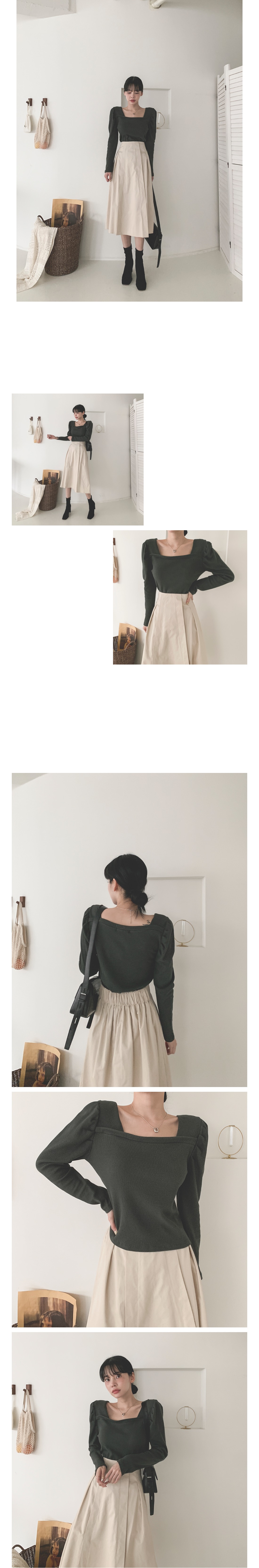 스퀘어 셔링 긴팔 티셔츠 아이보리 퍼플 카키 블랙 여성 가을 겨울 오피스