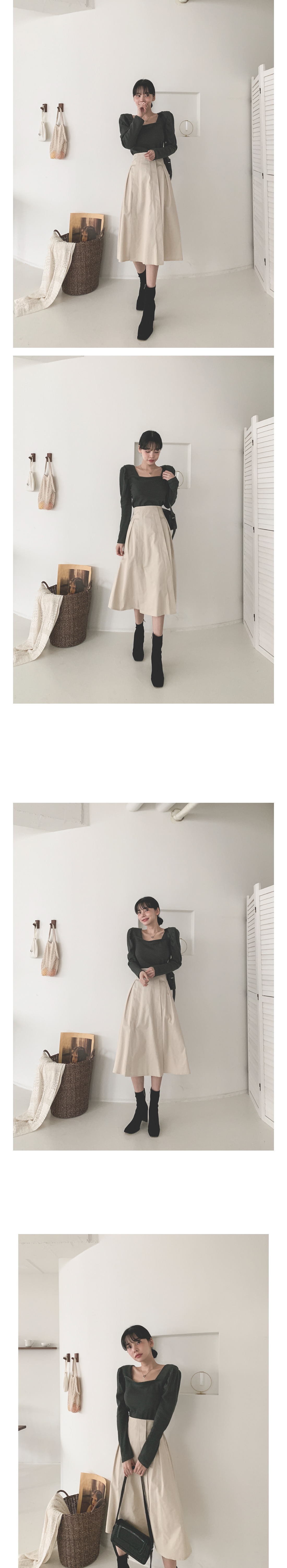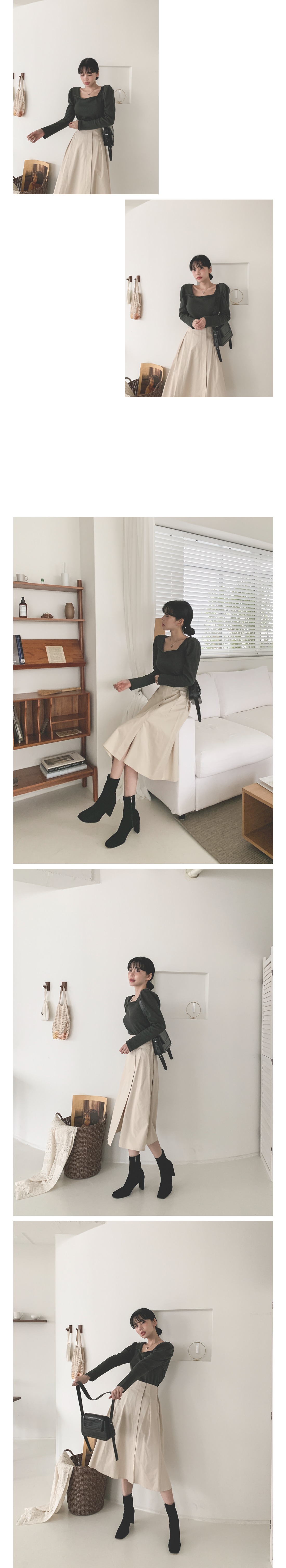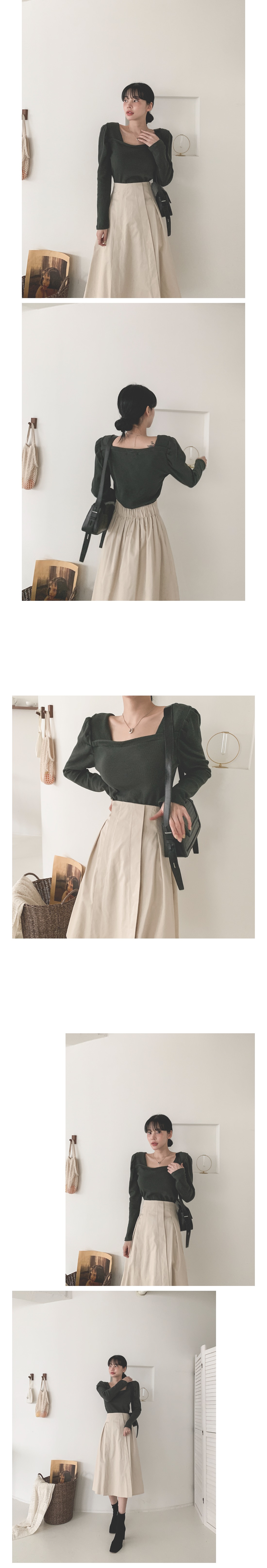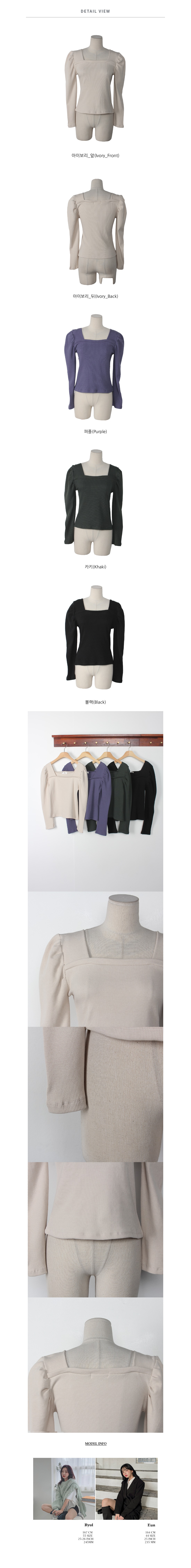 스퀘어 셔링 긴팔 티셔츠 아이보리 퍼플 카키 블랙 여성 가을 겨울 오피스