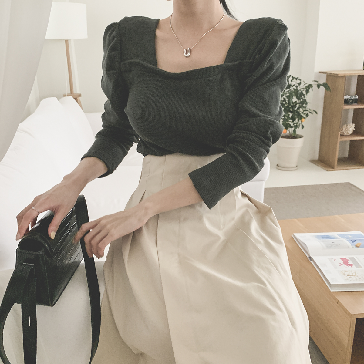 스퀘어넥과 어깨 셔링