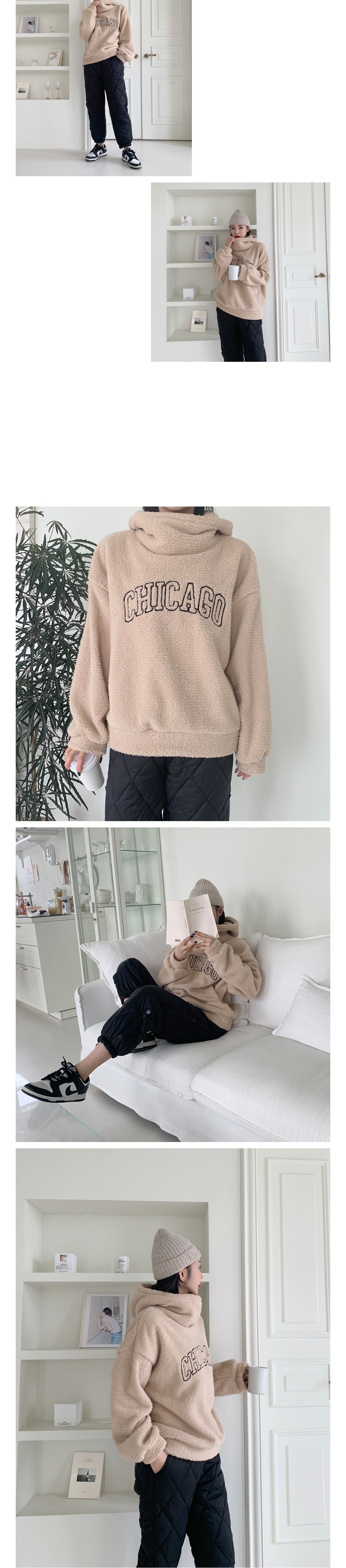 양털 후드티셔츠 박시 영문 레터링 겨울 박스 루즈 오버 핏 티셔츠
