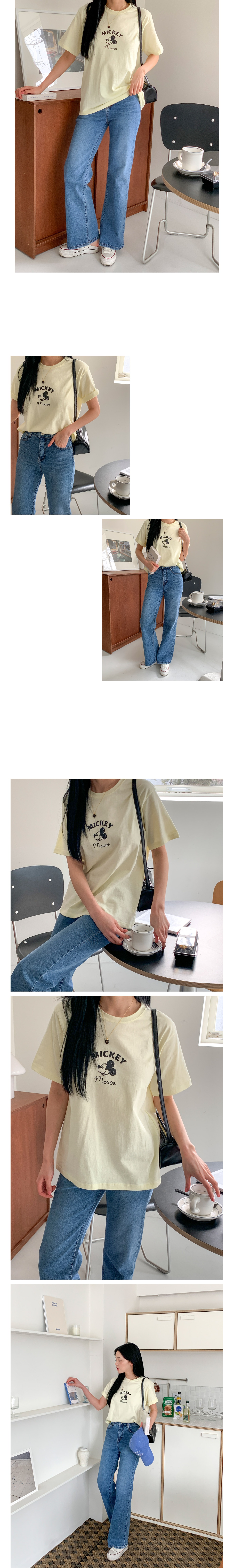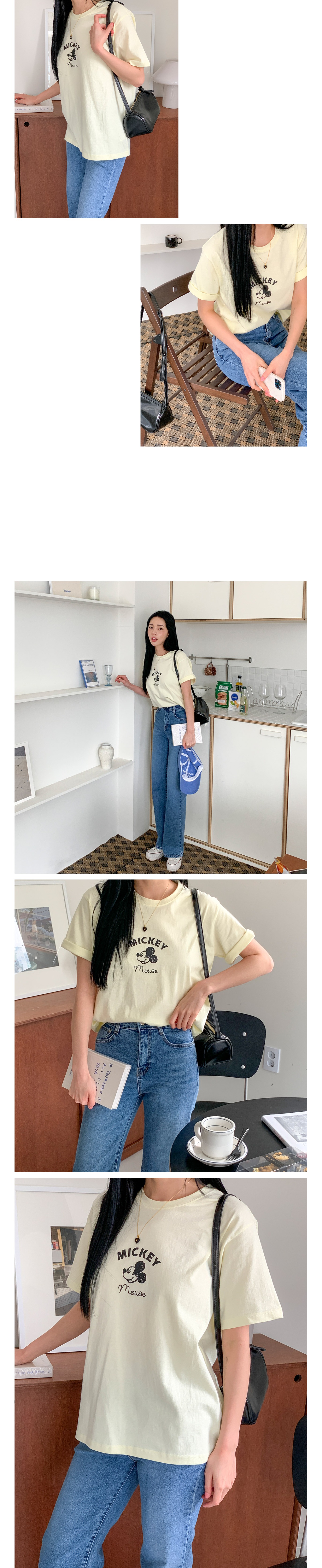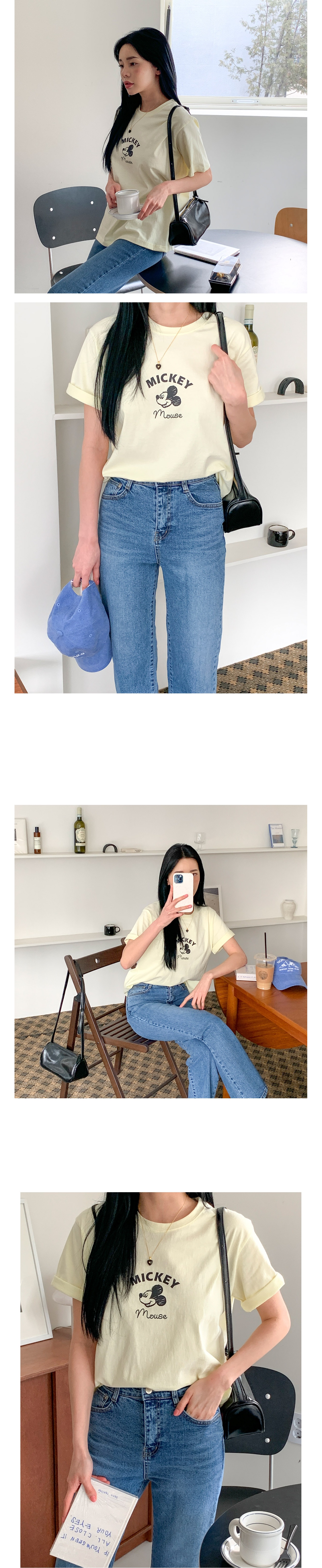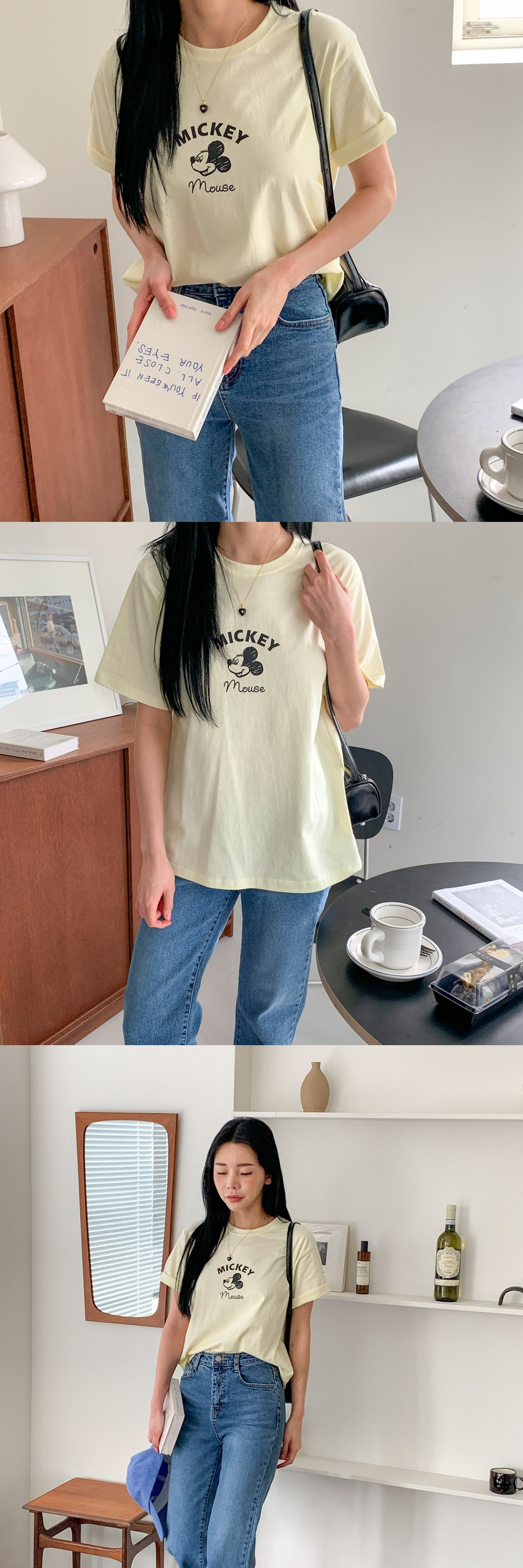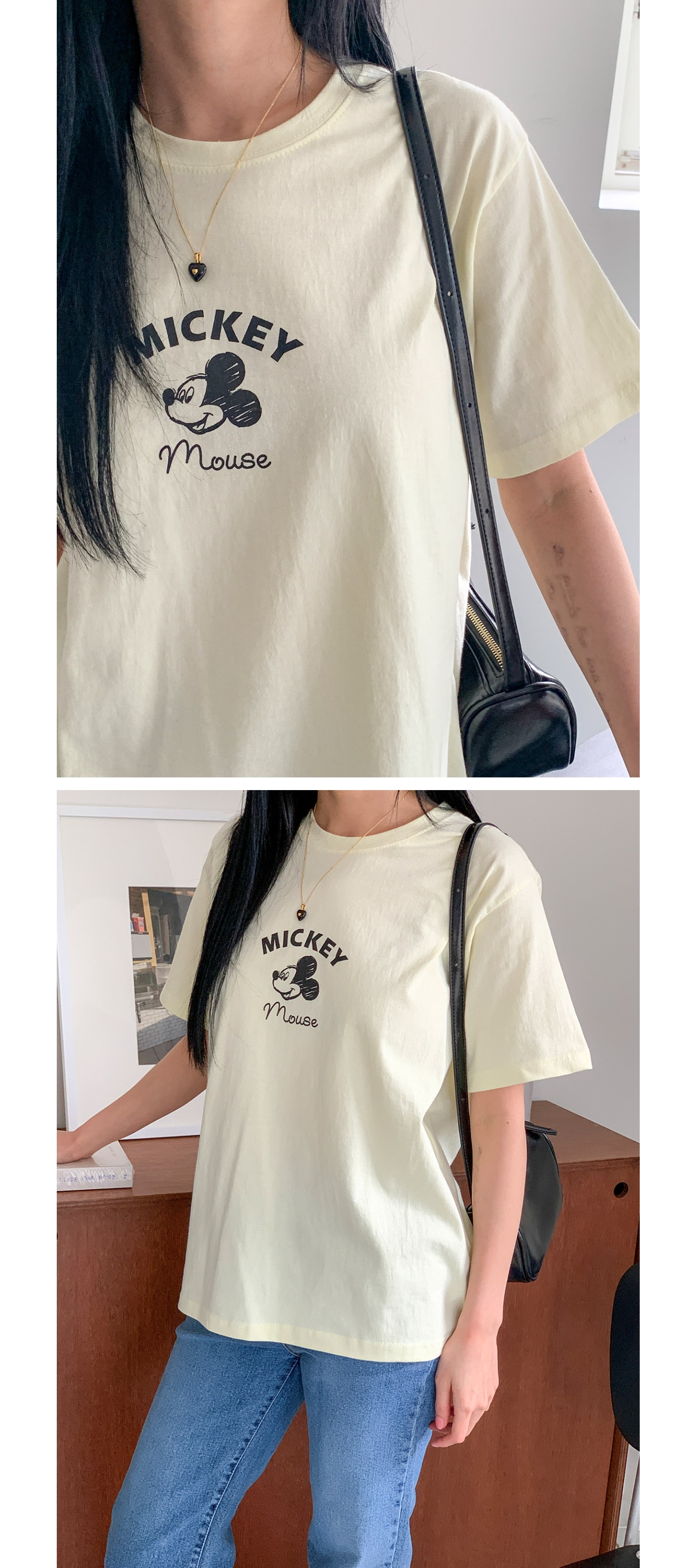 프린팅 미키 캐릭터 이너 레터링 여성 반팔 티셔츠